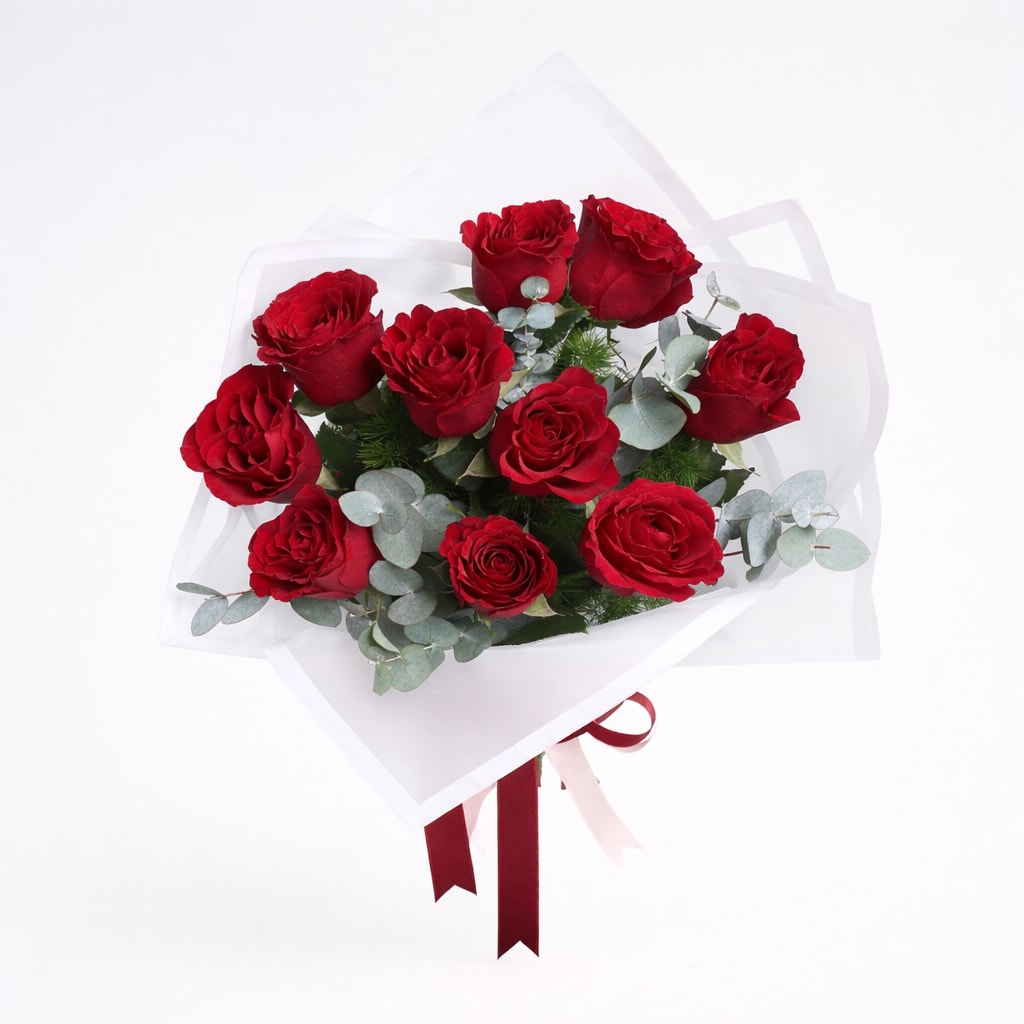Sevginizi en klasik ve etkileyici şekilde ifade edin. Özenle seçilmiş 10 adet kırmızı gül, şık yeşillikler ve zarif kurdele detayıyla hazırlanan bu buket; aşkı, tutkuyu ve zarafeti bir arada sunar.